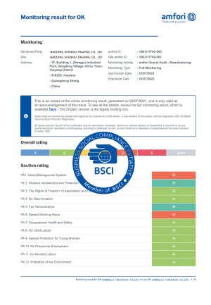 We have CE/BSCI/SEDEX/ISO 9001/ISO 14001/GRS.