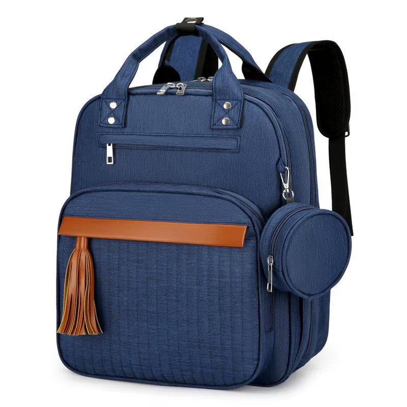 Our Laptop Baby Diaper Backpack with Small Pouch combines fashion-forward design with practical parenting essentials. Crafted from waterproof oxford, it keeps gear dry in all seasons. The main compartments are sized for laptop safety and baby supplies, while the included small pouch provides extra organization for quick-access items. The bag is insulated to help maintain bottle warmth and food freshness, and its soft, ergonomic shoulder straps ensure comfortable all-day wear.